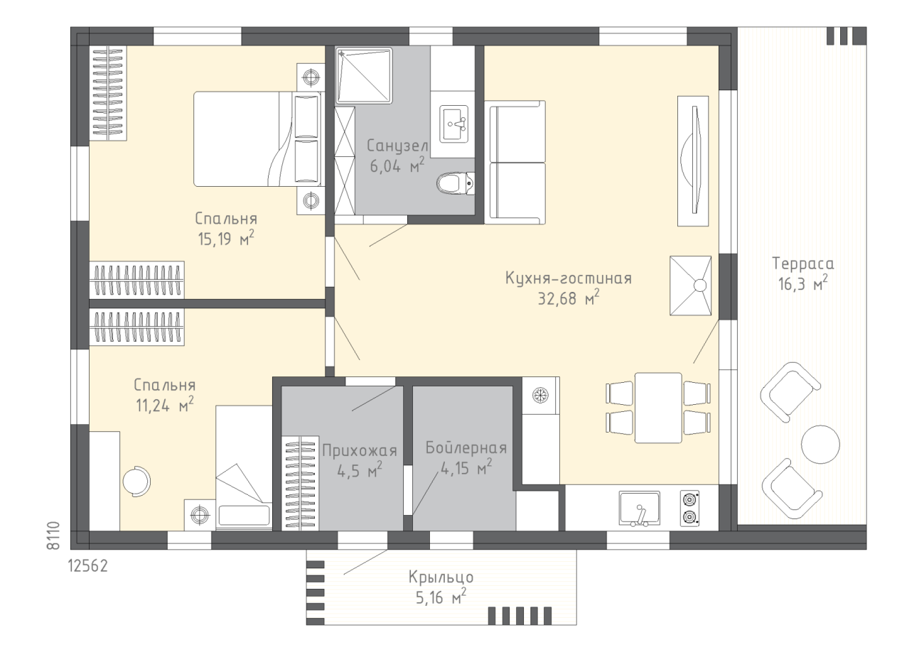Наружные стеновые панели: Перегородки внутренние каркасные: Террасные панели Стропильная система: Столбы и балки: |