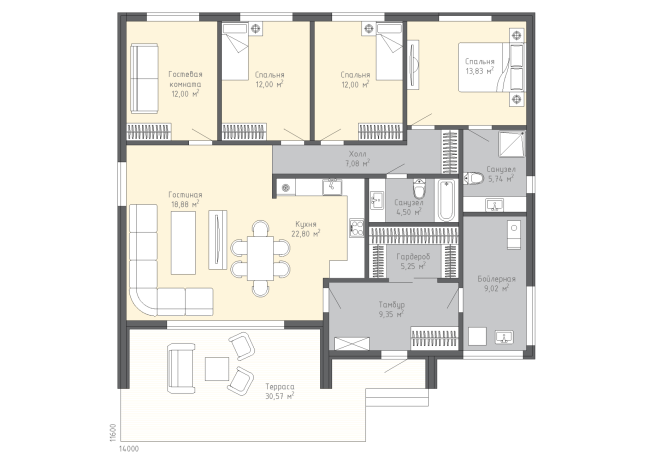 • Каркас из доски 45х195 мм‚ обработана антисептиком.
