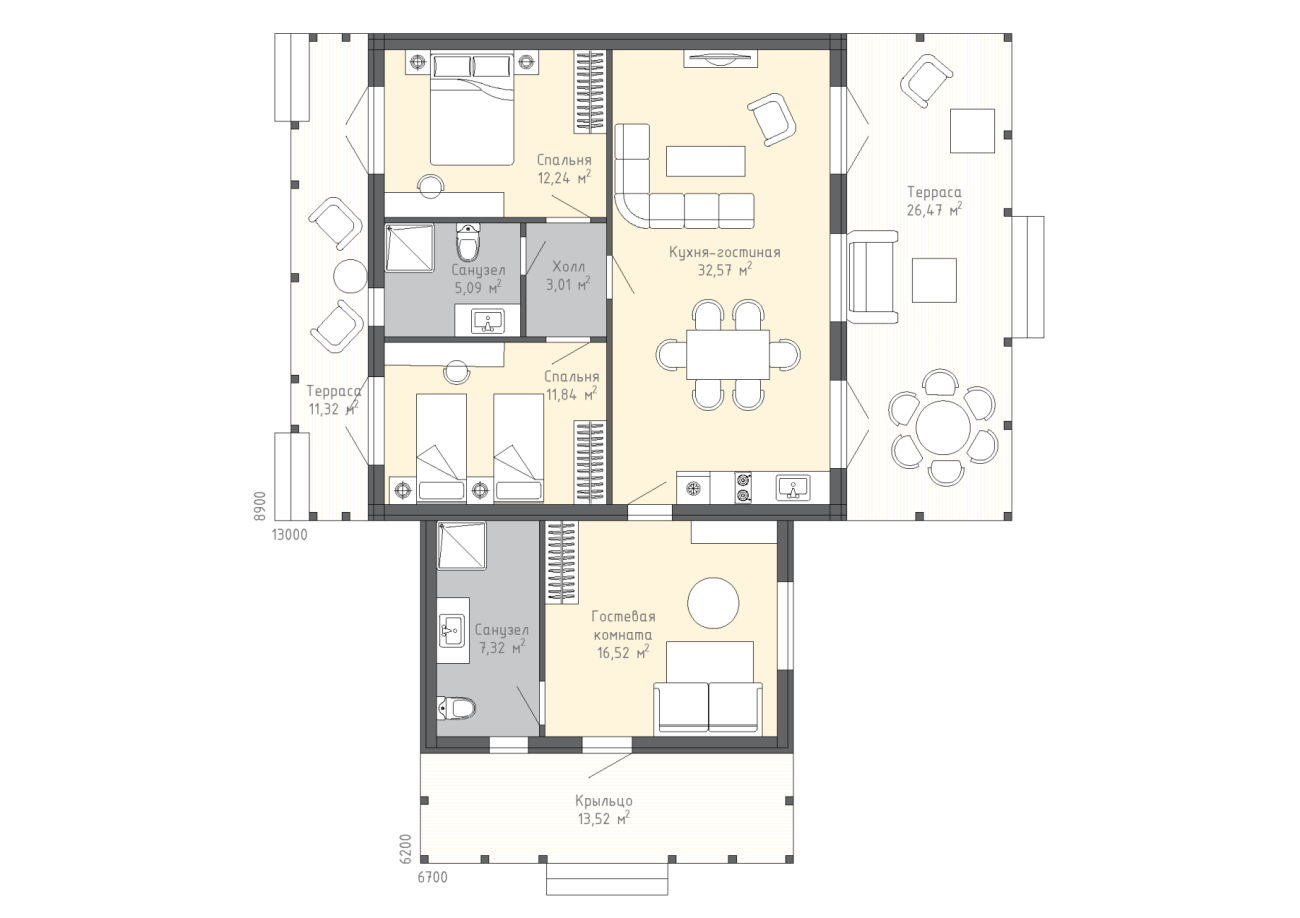 • Каркас из доски 45х195 мм‚ обработана антисептиком.