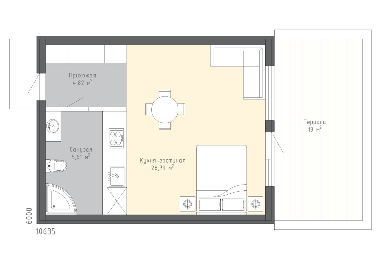 • Каркас из доски 45х195 мм‚ обработана антисептиком.