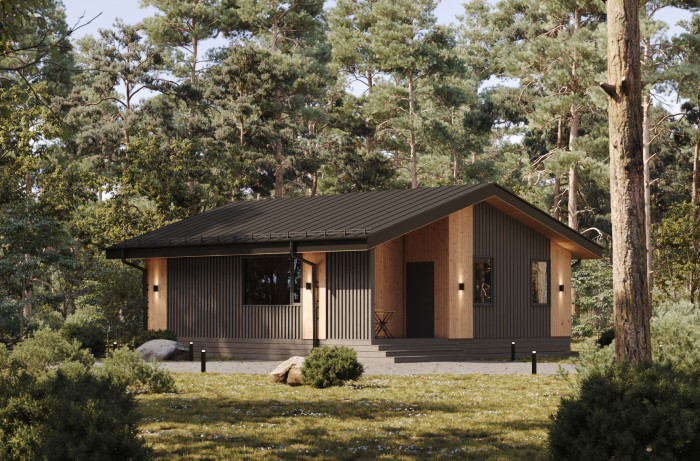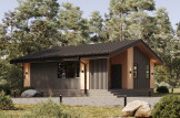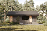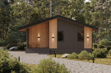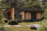 • CLT панель 100 мм с перекрестный утеплением 100 мм и обшивкой окрашенной скандинавской доской.