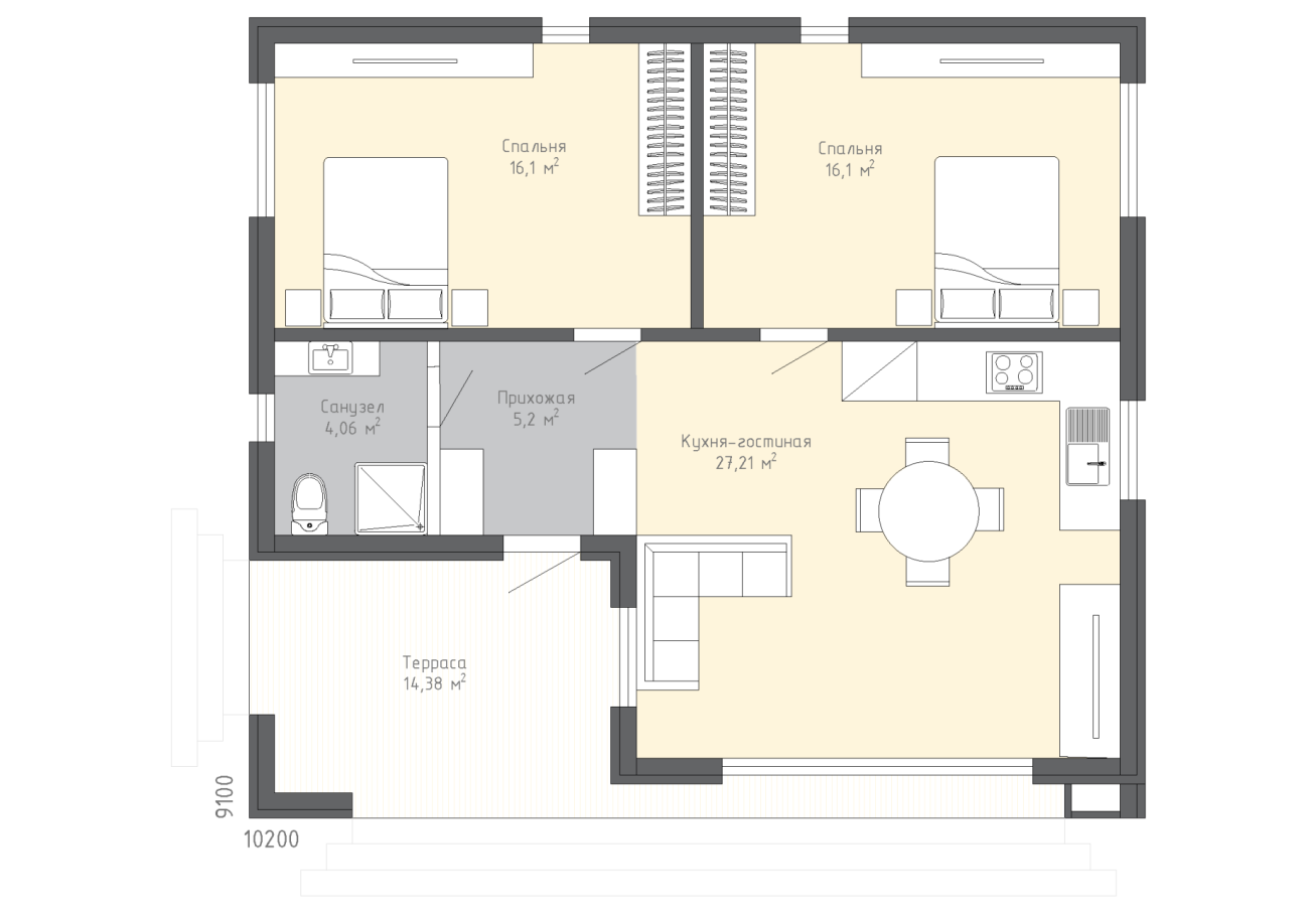 10,2 × 9,1 м
